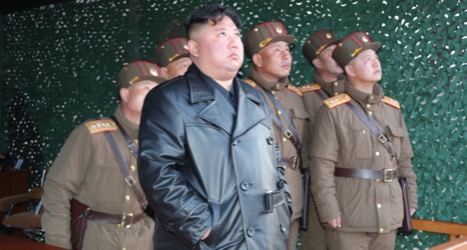 Kim Jong-un observes the launches that took place on March 21, 2020. (Source: KCNA)